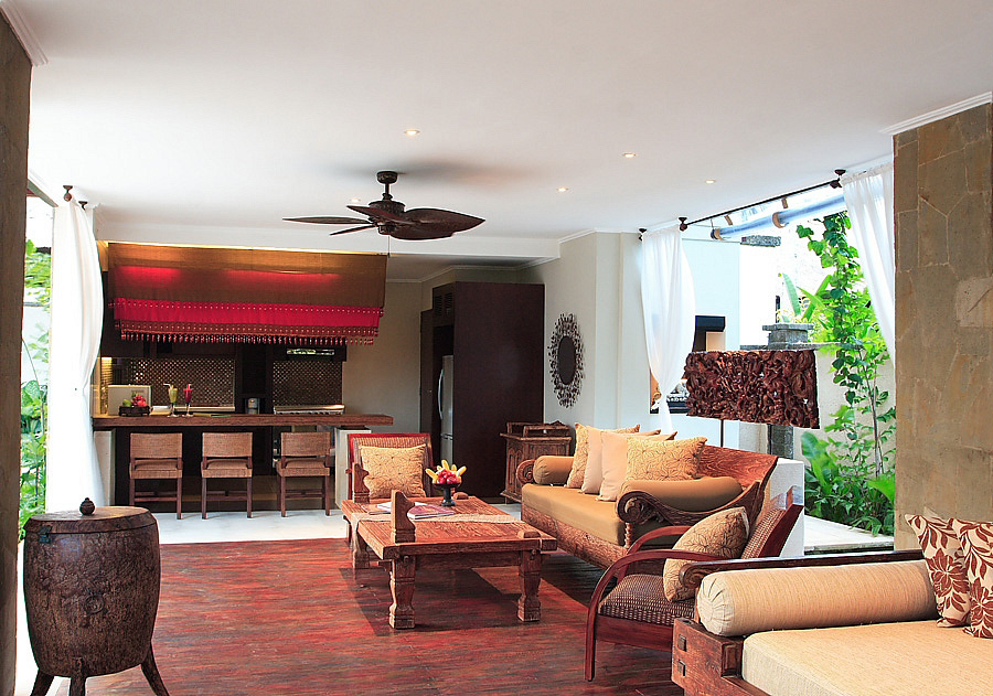 Equipped with Wi-Fi and contemporary features, the two-bedroom villa is also built in classical Balinese style with thatched roofs and indoor and outdoor living spaces. With a beachside feel, it is the ultimate tropical getaway for smaller families or two couples.